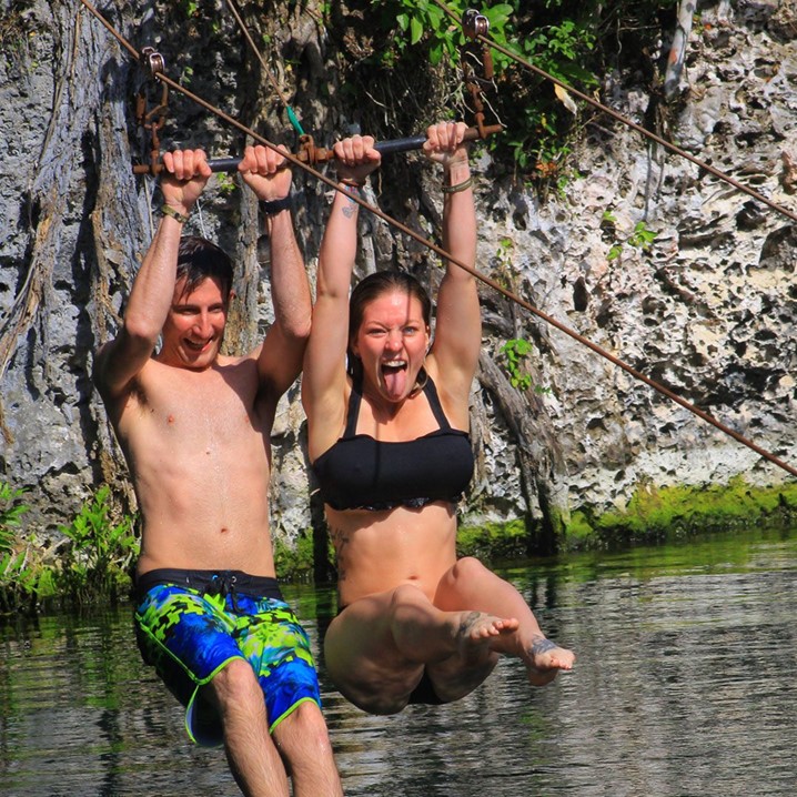 Next, unleash your inner adventurer on a thrilling circuit of 7 ziplines, featuring 5 unique styles of flight, plus a heart pumping rappel descent! Cool off with a magical swim in an underground cenote, surrounded by crystal clear waters and natural beauty.